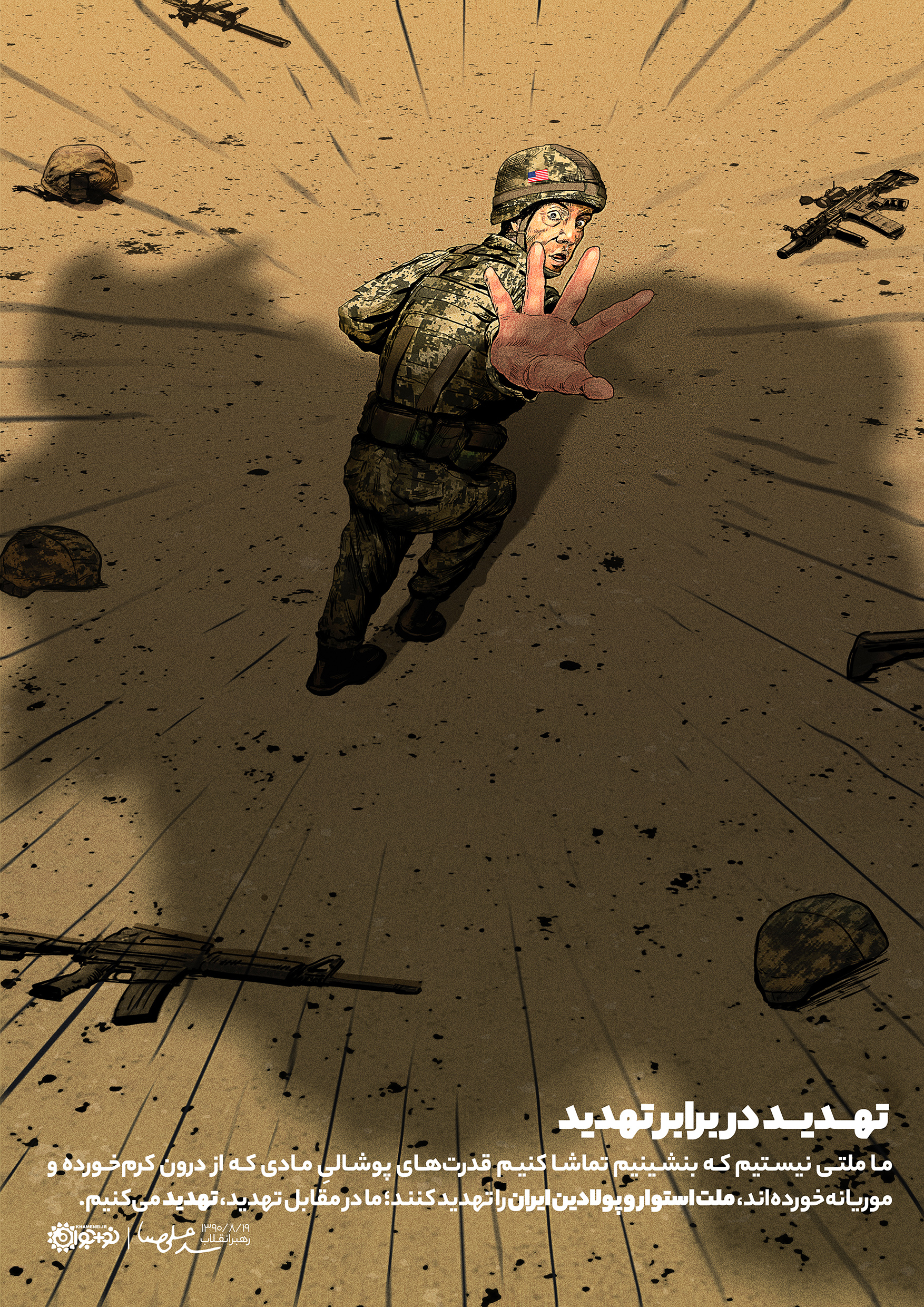 ما ملتی نیستیم که بنشینیم تماشا کنیم قدرتهای پوشالىِ مادی که از درون کرمخورده و موریانهخوردهاند، ملت استوار و پولادین ایران را تهدید کنند. ما در مقابل تهدید، تهدید میکنیم.