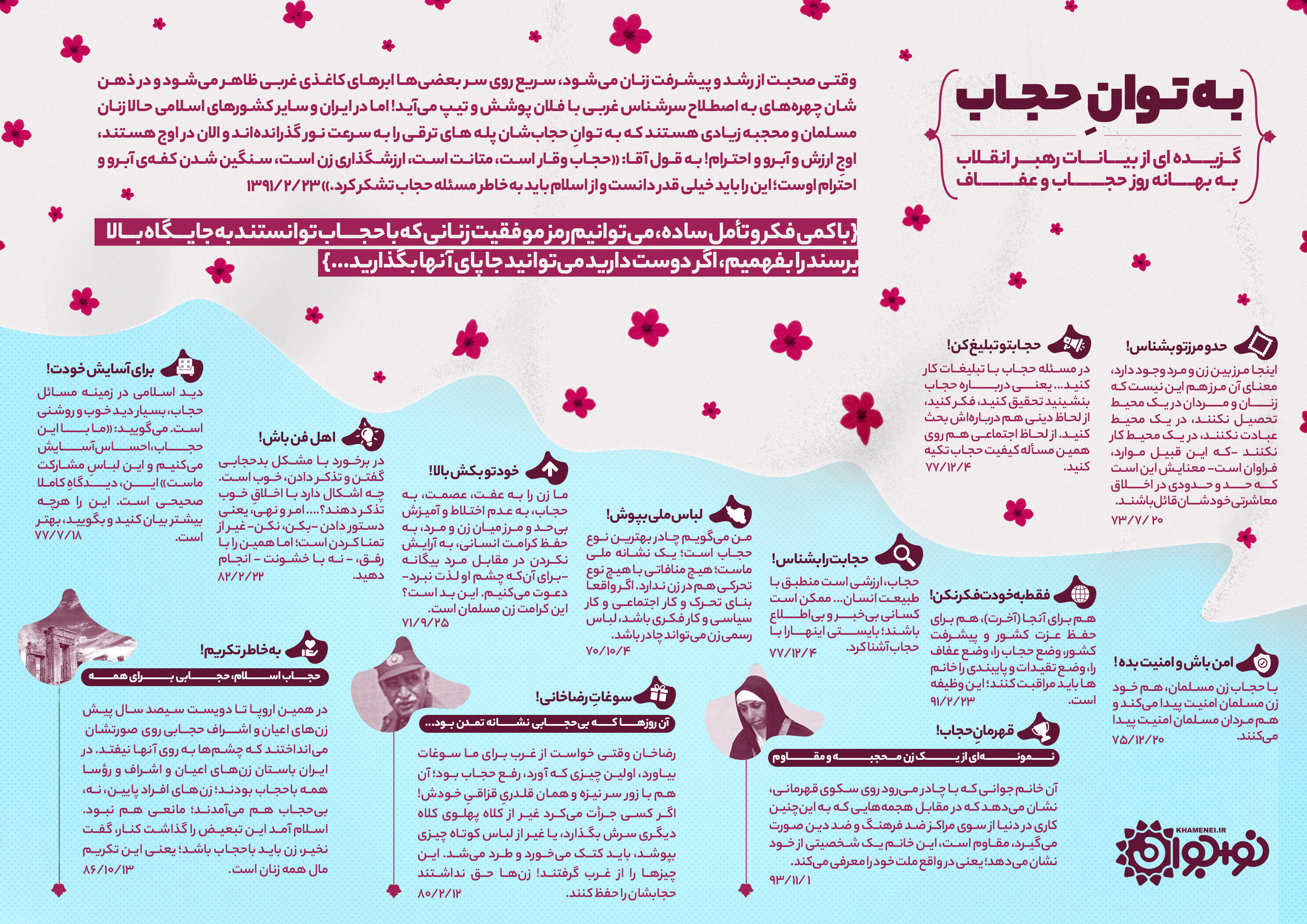 حجاب وقار است، متانت است، ارزشگذاری زن است، سنگین شدن کفه آبرو و احترام اوست؛ این را باید خیلی قدر دانست و از اسلام باید به خاطر مسئله حجاب تشکر کرد.