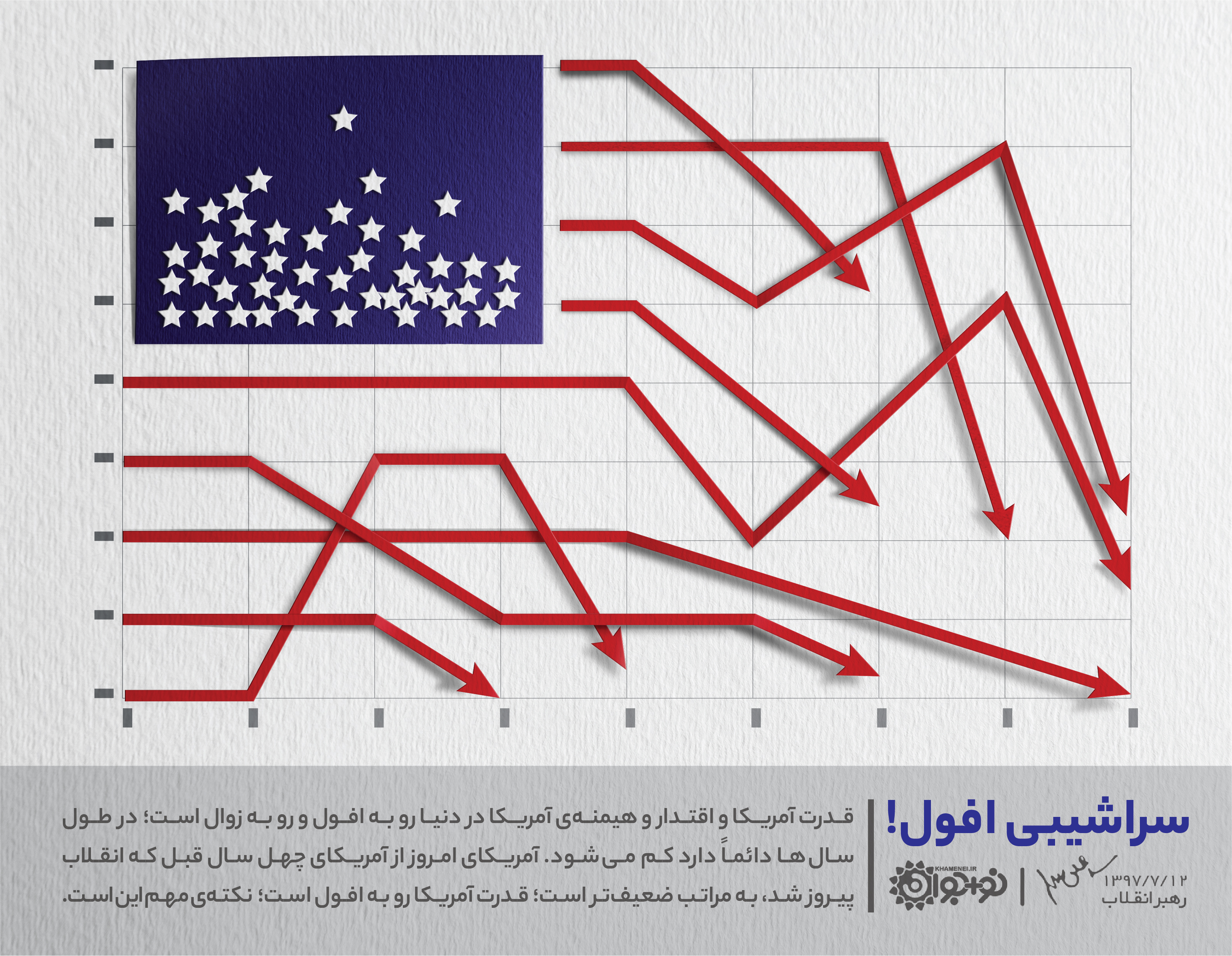 قدرت آمریکا و اقتدار و هیمنه آمریکا در دنیا رو به افول و روبهزوال است؛ در طول سالها دائماً دارد کم میشود. آمریکای امروز از آمریکای چهل سال قبل که انقلاب پیروز شد، به مراتب ضعیفتر است؛ قدرت آمریکا رو به افول است؛ نکته مهم این است.