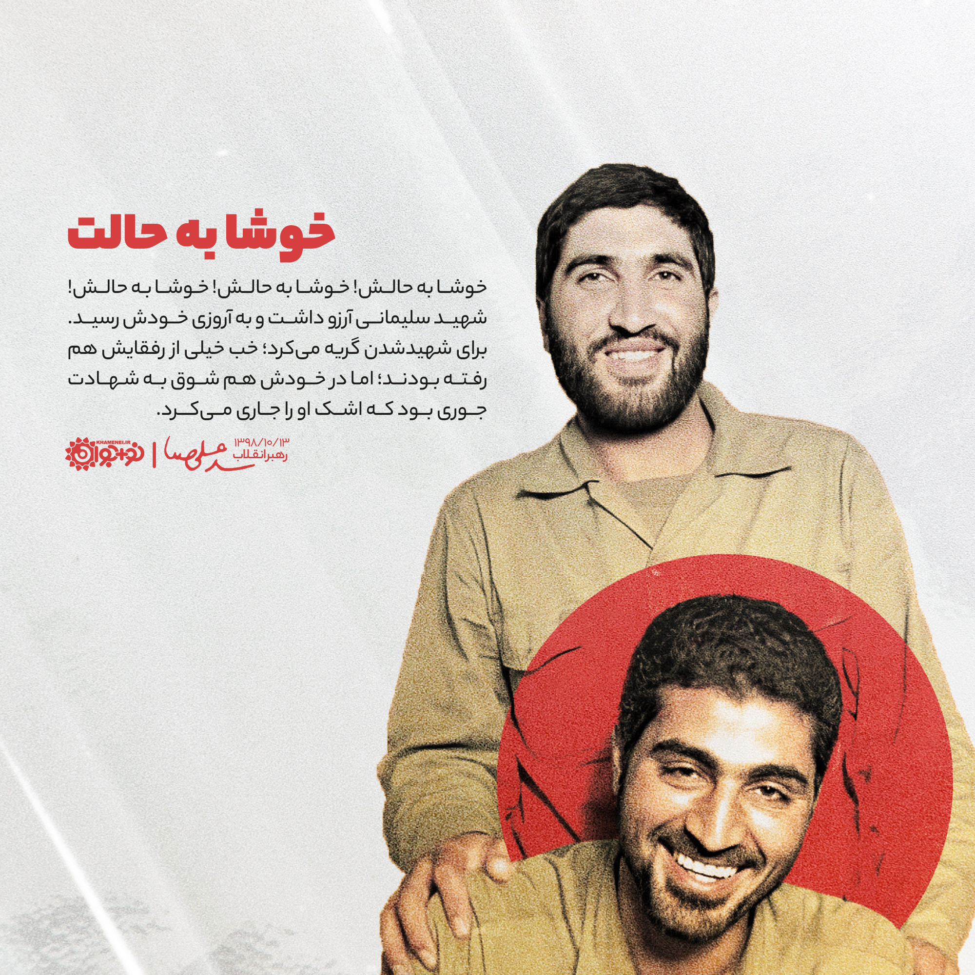 خوشا به حالش! خوشا به حالش! خوشا به حالش! شهـد سلیمانی آرزو داشت و به آروزی خودش رسید. برای شهید شدن گریه میکرد؛ خب خیلی از رفقایش هم رفـته بودند؛ اما در خودش هم شوق به شهادت جـوری بود که اشک او را جاری میکرد.