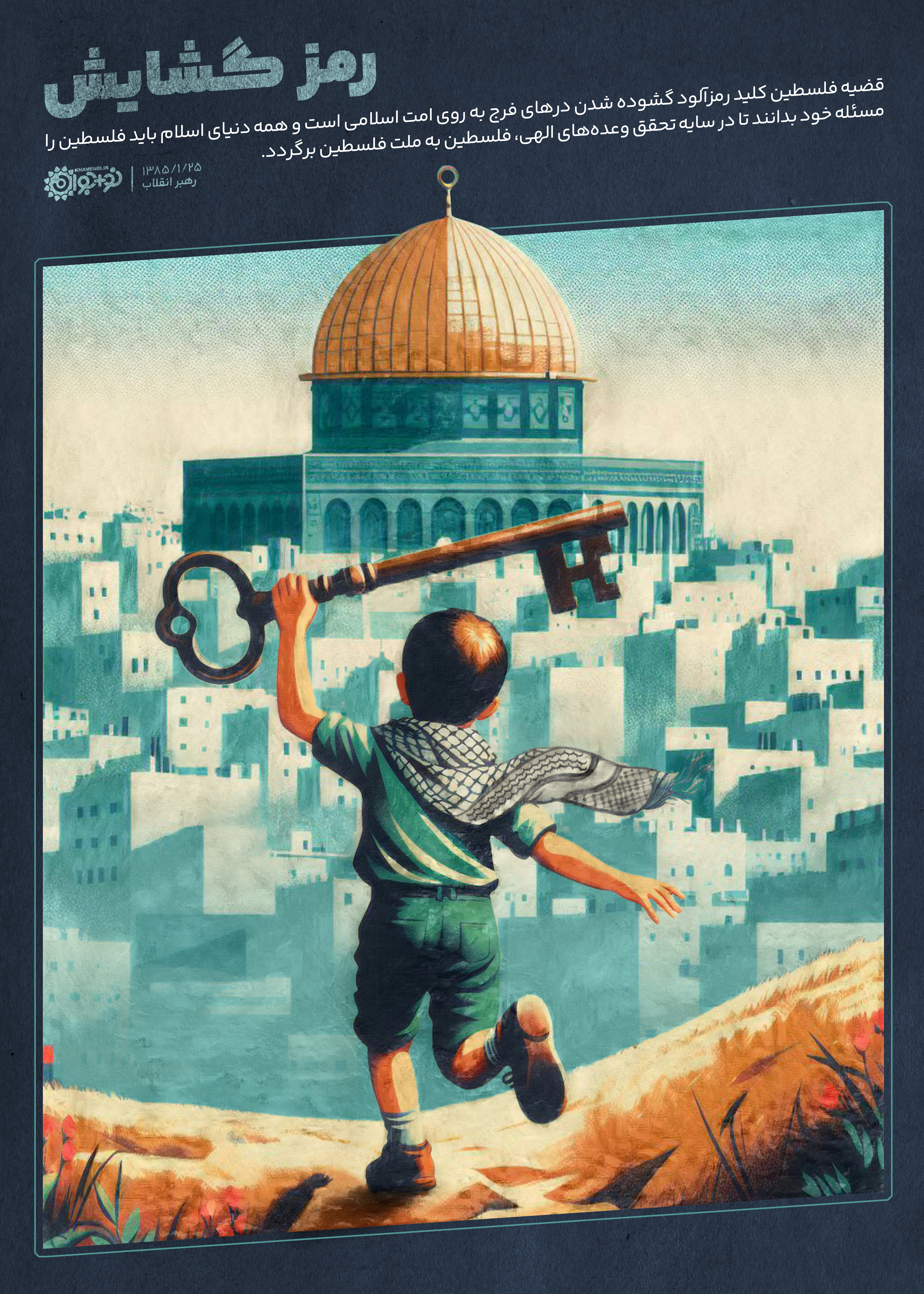 قضیه فلسطین کلید رمزآلود گشودهشدن درهای فرج به روی امت اسلامی است و همه دنیای اسلام باید فلسطین را مسئله خود بدانند تا در سایه تحقق وعدههای الهی، فلسطین به ملت فلسطین برگردد.