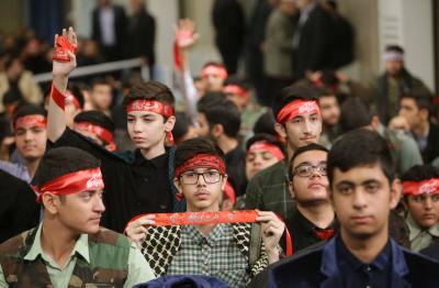 اقامه نماز بر پیکر شهید سپهبد قاسم سلیمانی و یاران مجاهد او