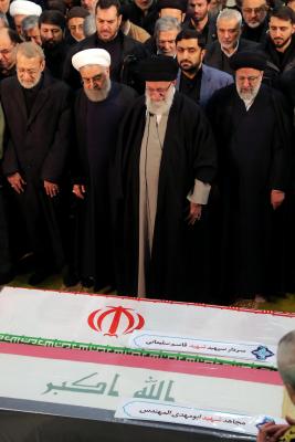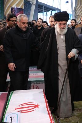در روز رستاخیز تهران و وداع تاریخی مردم مؤمن و قدرشناس آن با سردار بزرگ و پر افتخار اسلام سپهبد شهید حاج قاسم سلیمانی، حضرت آیتالله خامنهای رهبر معظم انقلاب اسلامی در دانشگاه تهران حضور یافتند و بر پیکر مطهر این شهید عالیمقام، مجاهد بزرگ ابومهدی المهندس و دیگر شهدای جنایت اخیر رژیم آمریکا، نماز اقامه کردند.