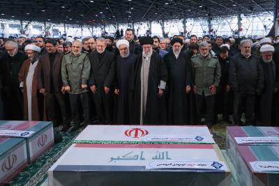 اقامه نماز بر پیکر شهید سپهبد قاسم سلیمانی و یاران مجاهد او
