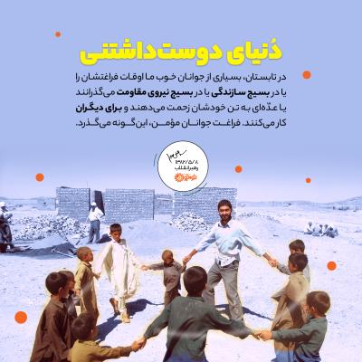 در تابستان، بسیاری از جوانان خوب ما اوقات فراغتشان را یا در بسیج سازندگی یا در بسیج نیروی مقاومت میگذرانند. یا عدّهای به تن خودشان زحمت میدهند و برای دیگران کار میکنند. فراغت جوانان مؤمن، این گونه میگذرد.