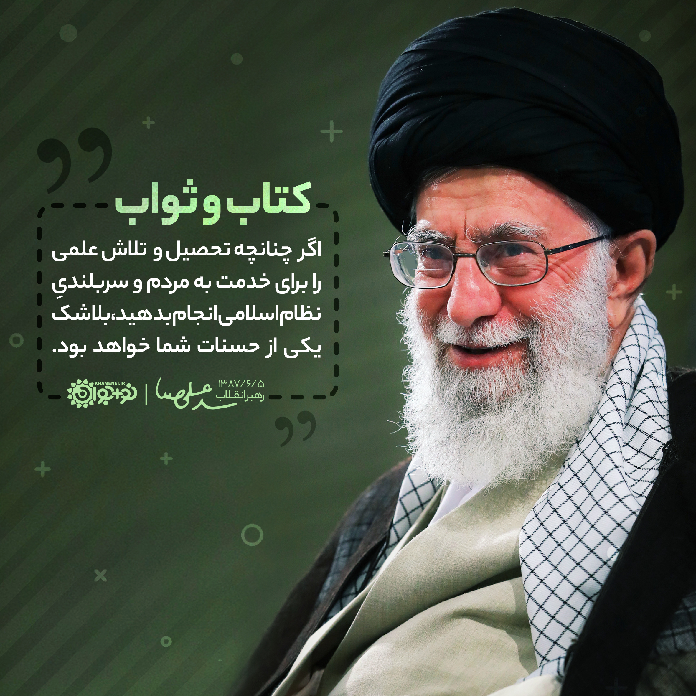 اگر چنانچه تحصیل و تلاش علمی را برای خدمت به مردم و سربلندی نظام اسلامی انجام بدهید، بلاشک یکی از حسنات شما خواهد بود.