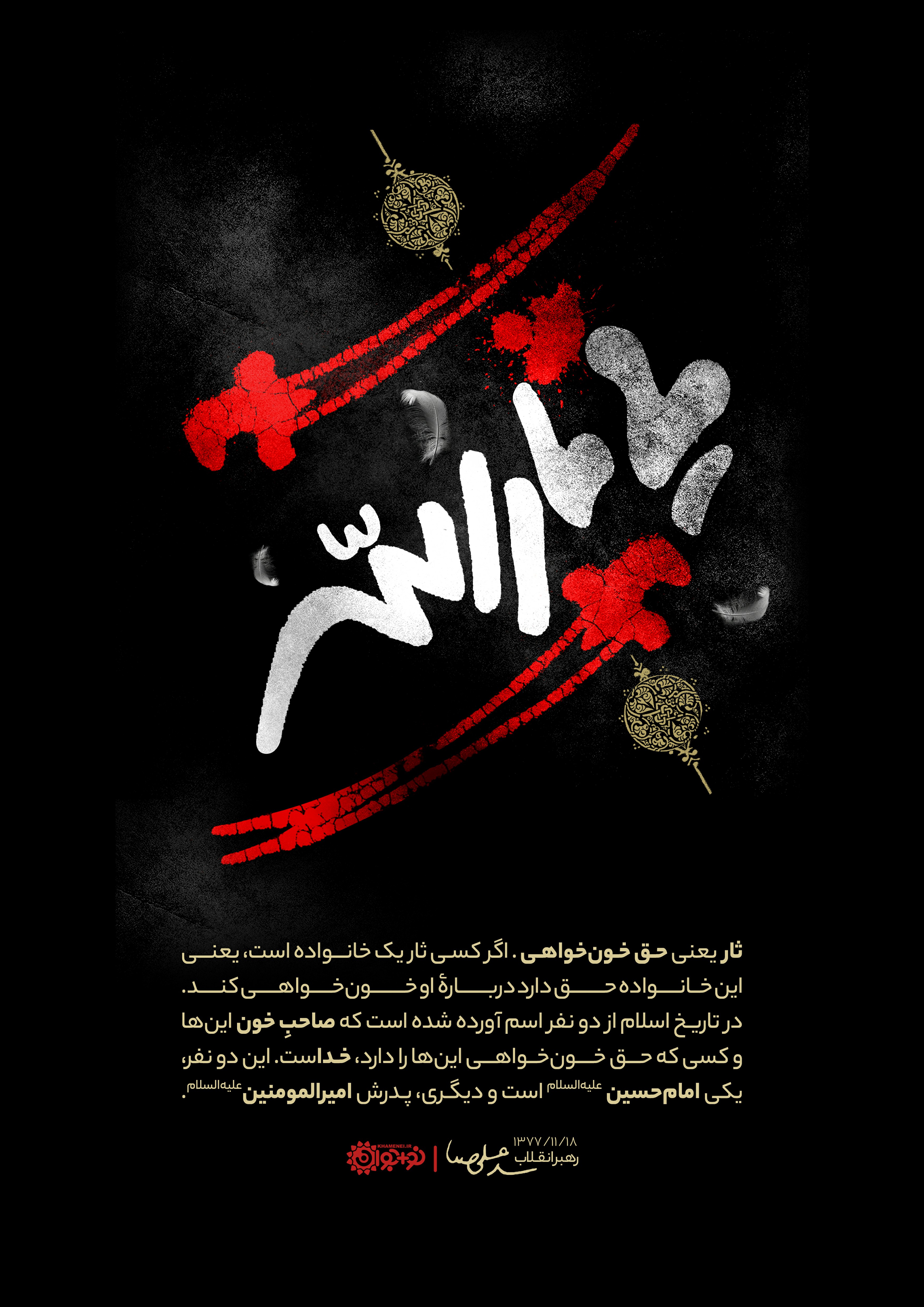 «ثار»، یعنی حقّ خونخواهی. اگر کسی «ثار» یک خانواده است، یعنی این خانواده حق دارد درباره او خونخواهی کند. در تاریخ اسلام از دو نفر اسم آورده شده است که صاحب خون اینها و کسی که حقِ خونخواهی اینها را دارد، خداست. این دو نفر یکی امام حسین علیهالسلام است و دیگری پدرش امیرالمؤمنین علیهالسلام.
