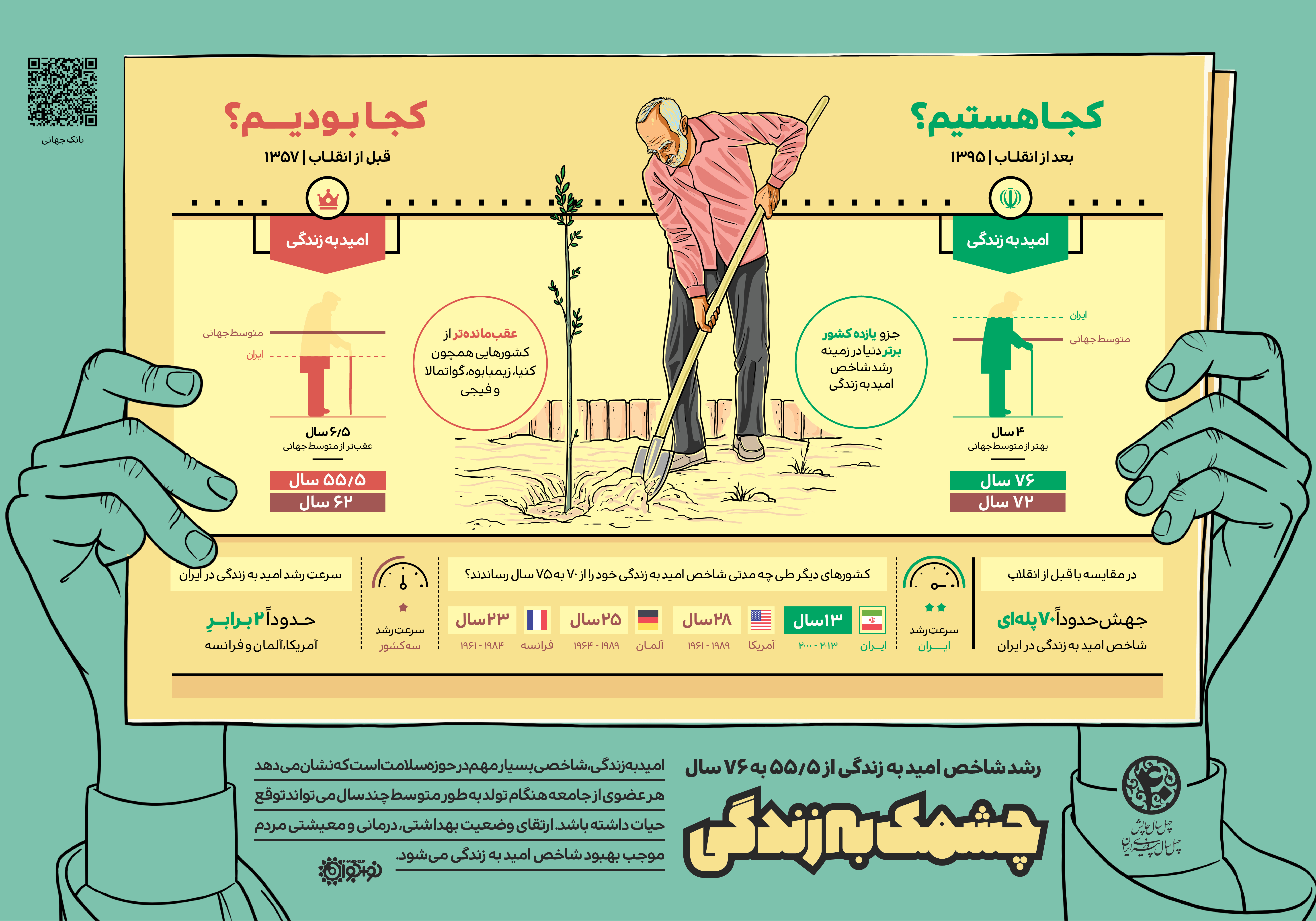 رشد شاخص امید به زندگی از 5/55 به 76 سال