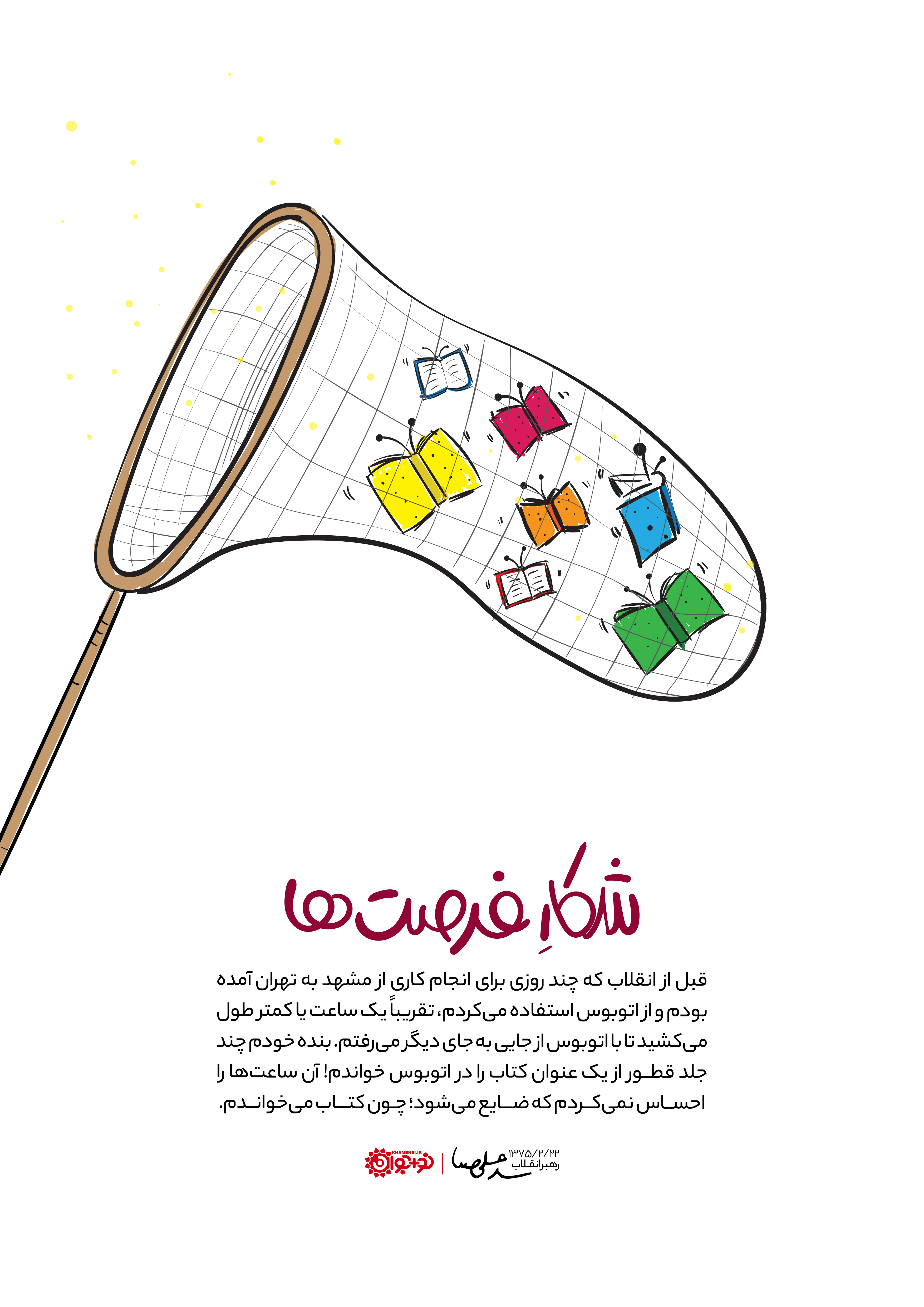 قبل از انقلاب که چند روزی برای انجام کاری از مشهد به تهران آمده بودم و از اتوبوس استفاده میکردم، تقریباً یک ساعت یا کمتر طول میکشید تا با اتوبوس از جایی به جای دیگر میرفتم. بنده خودم چند جلد قطور از یک عنوان کتاب را در اتوبوس خواندم! آن ساعتها را احساس نمیکردم که ضایع میشود؛ چون کتاب میخواندم.
