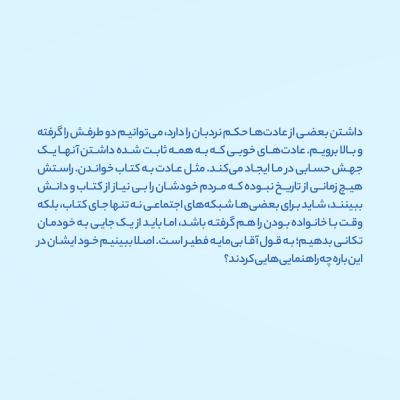 داشتن بعضی از عادتها حکم نردبان را دارد، میتوانیم دو طرفش را گرفته و بالا برویم. عادتهای خوبی که به همه ثابت شده داشتن آنها یک جهش حسابی در ما ایجاد میکند. مثل عادت به کتاب خواندن. راستش هیچ زمانی از تاریخ نبوده که مردم خودشان را بینیاز از کتاب و دانش ببینند، شاید برای بعضیها شبکههای اجتماعی نه تنها جای کتاب، بلکه وقت با خانواده بودن را هم گرفته باشد، اما باید از یک جایی به خودمان تکانی بدهیم؛ به قول آقا بیمایه فطیر است. اصلا ببینیم خود ایشان در این باره چه راهنماییهایی کردند؟