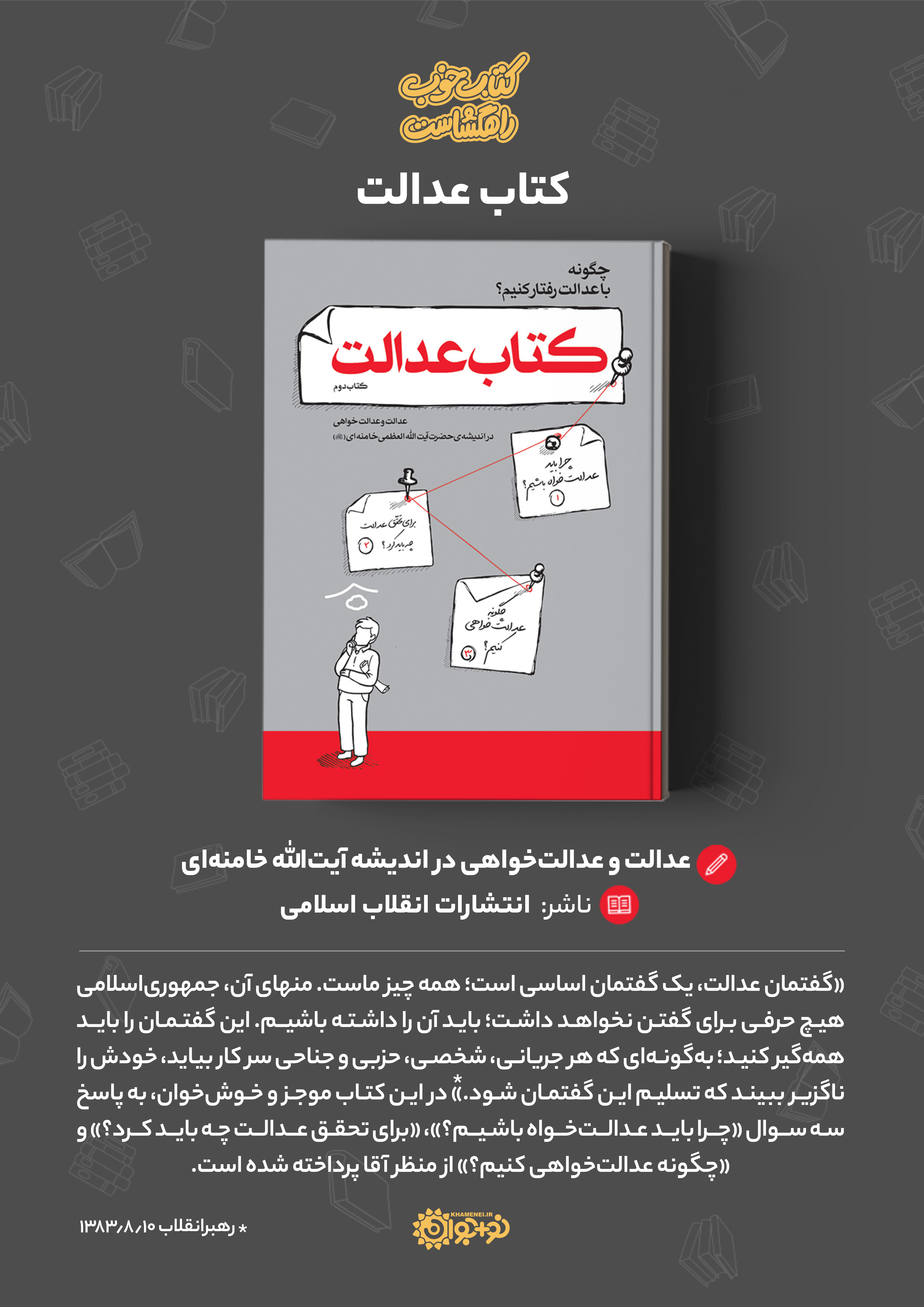 گفتمان عدالت یک گفتمان اساسی است؛ همه چیز ماست.منهای آن جمهوری اسلامی هیچ حرفی برای گفتن نخواهد داشت؛ باید آن را داشته باشیم. این گفتمان را باید همه گیر کنید ؛ بهگونهیی که هر جریانی، شخصی، حزبی و جناحی سر کار بیاید، خودش را ناگزیر ببیند که تسلیم این گفتمان شود.