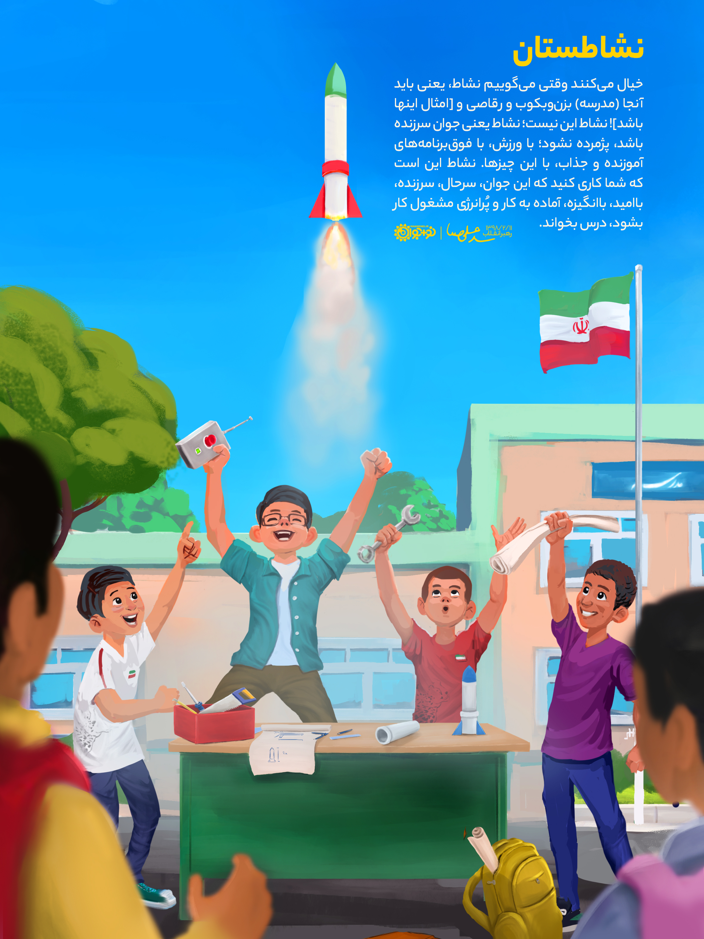 خیال میکنند وقتی میگوییم «نشاط»، یعنی باید آنجا (مدرسه) بزن و بکوب و رقّاصی و [امثال اینها باشد]! نشاط این نیست؛ نشاط یعنی جوان سرزنده باشد، پژمرده نشود؛ با ورزش، با فوقبرنامههای آموزنده و جذّاب، با این چیزها. نشاط این است که شما کاری کنید که این جوان، سرحال، سرزنده، باامید، باانگیزه، آماده به کار و پُرانرژی مشغول کار بشود، درس بخواند.