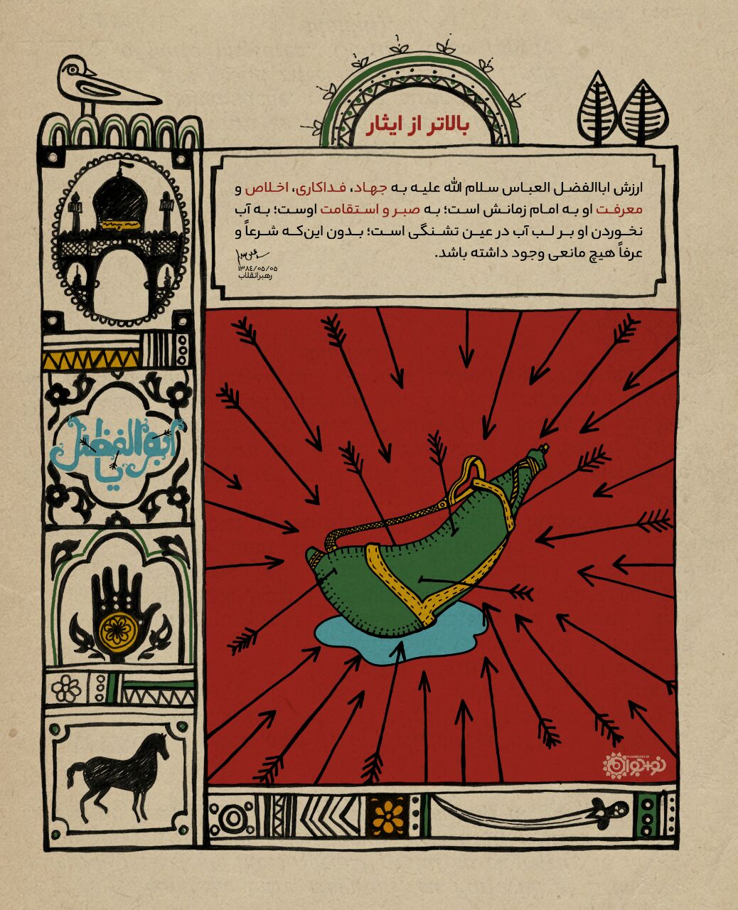 ارزش اباالفضل سلاماللهعلیه به جهاد، فداکاری، اخلاص و معرفت او به امام زمانش است؛ به صبر و استقامت اوست؛ به آب نخوردن او بر لب آب در عین تشنگی است؛ بدون اینکه شرعاً و عرفاً هیچ مانعی وجود داشته باشد.