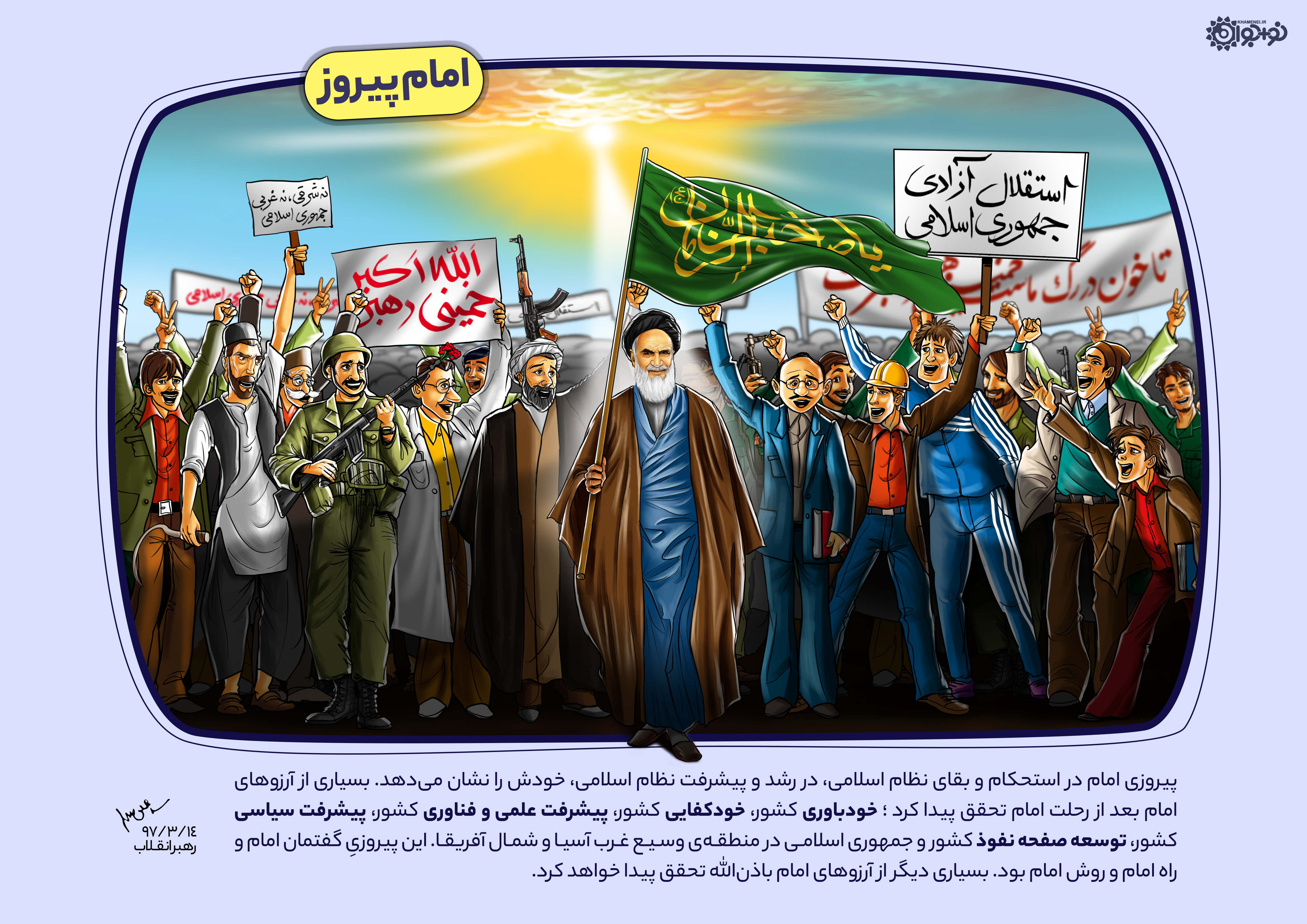 پیروزیِ امام، در استحکام و بقای نظام اسلامی، در رشد و توسعه و پیشرفت نظام اسلامی خودش را نشان میدهد. بسیاری از آرزوهای امام، بعد از رحلت امام تحقّق پیدا کرد؛ خودباوری کشور، خودکفائی کشور، پیشرفت علمی و فنّاوری کشور، پیشرفت سیاسی کشور، توسعه صفحه نفوذ کشور و جمهوری اسلامی در منطقه وسیع غرب آسیا و شمال آفریقا. این پیروزیِ گفتمان امام و راه امام و روش امام بود. بسیاری دیگر از آرزوهای امام باذنالله تحقّق پیدا خواهد کرد.