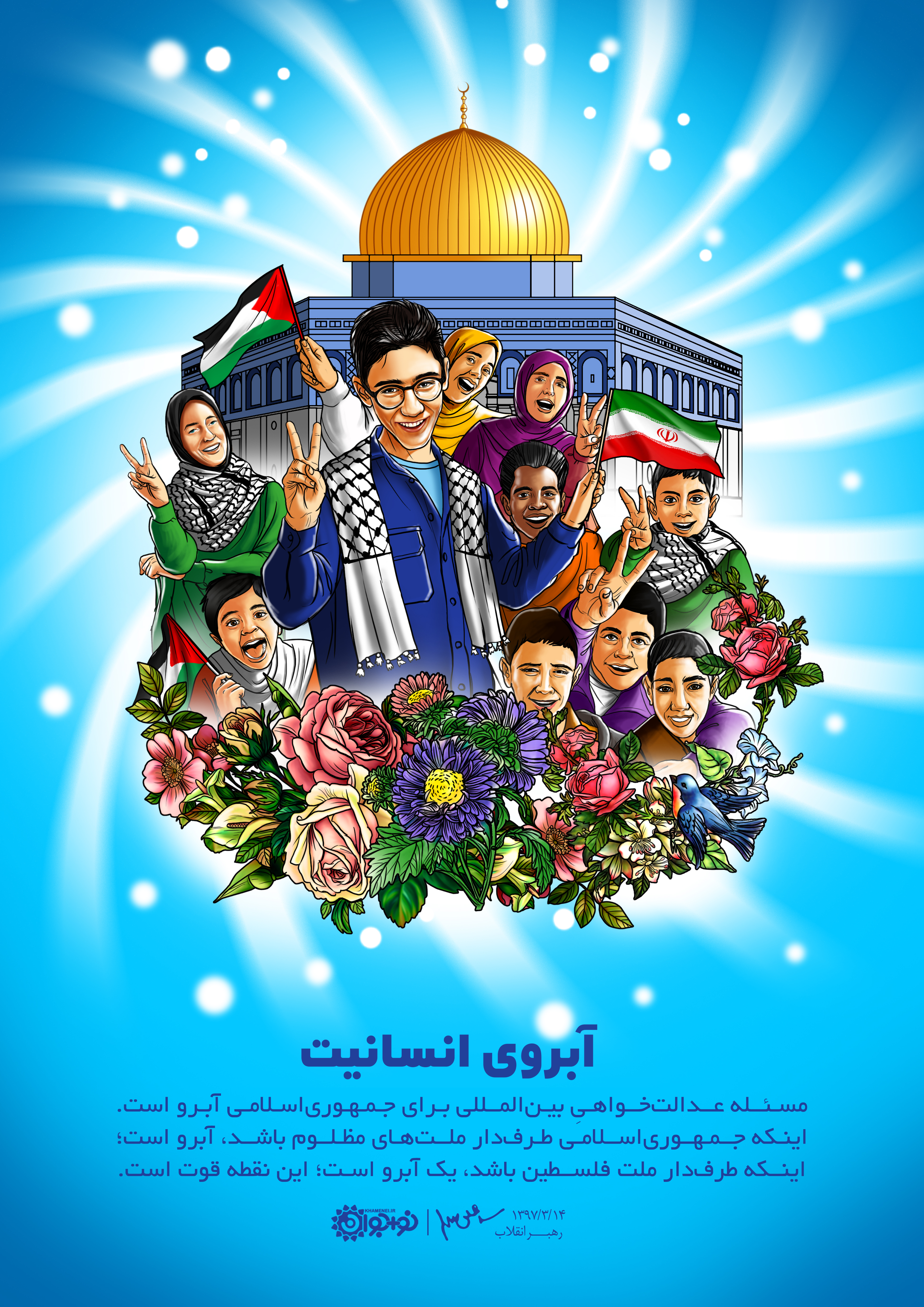 مسئله عدالتخواهیِ بینالمللی برای جمهوری اسلامی آبرو است. اینکه جمهوری اسلامی طرفدار ملّتهای مظلوم باشد، آبرو است؛ اینکه طرفدار ملّت فلسطین باشد، یک آبرو است. این نقطه قوّت است.