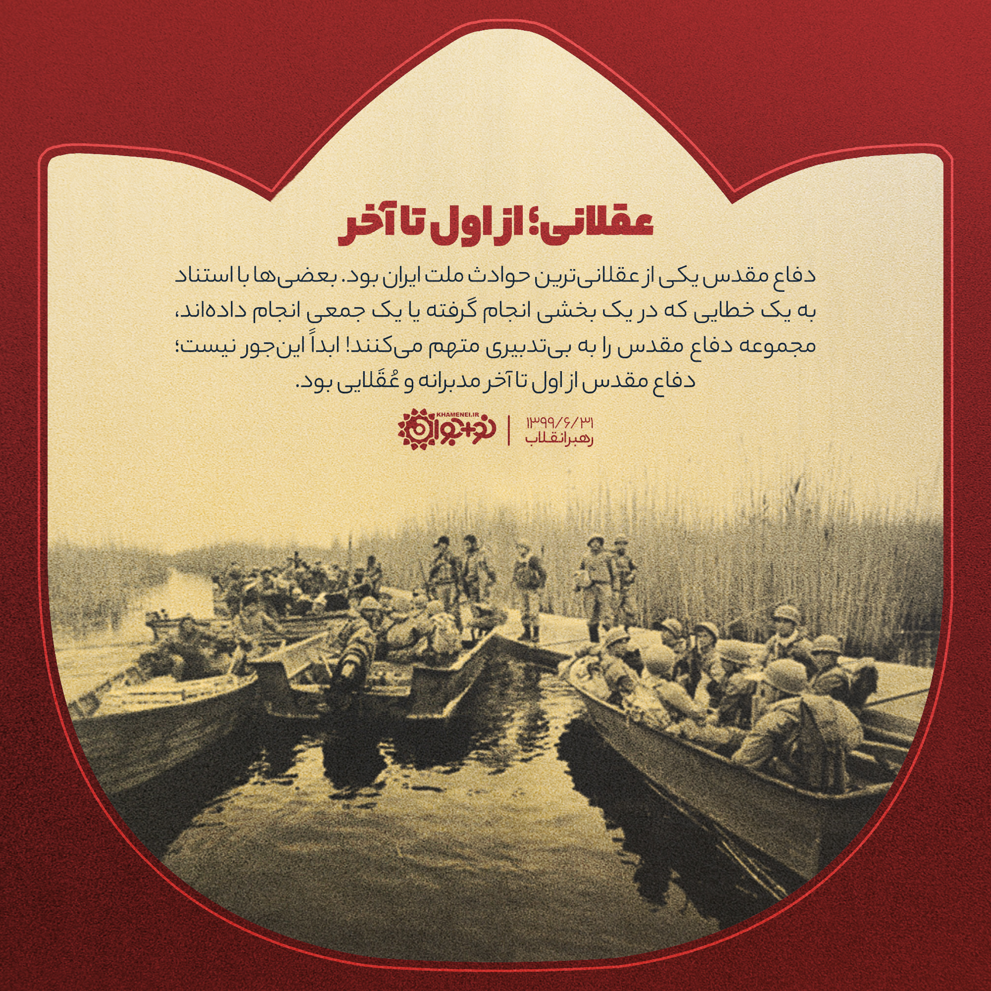 دفاع مقدّس یکی از عقلانیترین حوادث ملّت ایران بود. بعضیها با استناد به یک خطایی که در یک بخشی انجامگرفته یا یک جمعی انجام دادهاند، مجموعه دفاع مقدّس را به بیتدبیری متّهم میکنند؛ ابداً اینجور نیست؛ دفاع مقدّس از اوّل تا آخر مدبّرانه و عُقلائی بود.