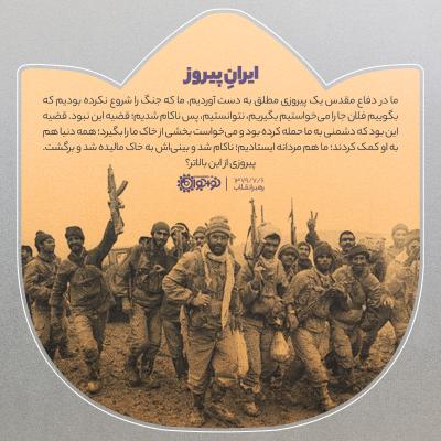 ما در دفاع مقدس یک پیروزی مطلق به دست آوردیم. ما که جنگ را شروع نکرده بودیم که بگوییم فلان جا را میخواستیم بگیریم، نتوانستیم، پس ناکام شدیم؛ قضیه این نبود. قضیه این بود که دشمنی به ما حمله کرده بود و میخواست بخشی از خاک ما را بگیرد؛ همه دنیا هم به او کمک کردند؛ ما هم مردانه ایستادیم؛ ناکام شد و بینیاش به خاک مالیده شد و برگشت. پیروزی از این بالاتر؟