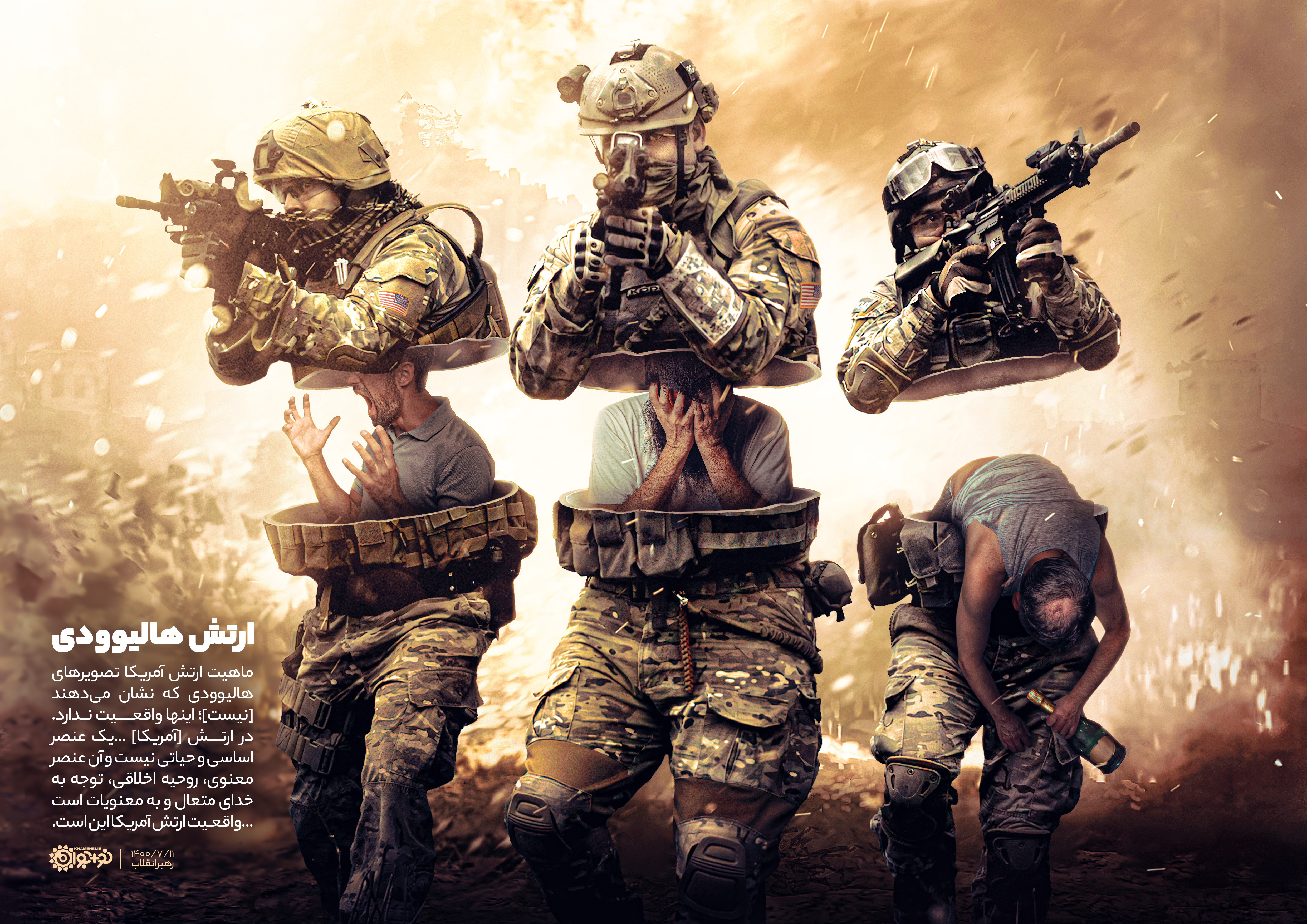 ماهیّت ارتش آمریکا که تصویرهای هالیوودی نشان میدهند، [نیست]؛ اینها واقعیّت ندارد ... در ارتش [آمریکا] یک عنصر اساسی و حیاتی نیست و آن عنصر معنوی، روحیه اخلاقی، توجه به خدای متعال و به معنویات است ... واقعیت ارتش آمریکا این است.