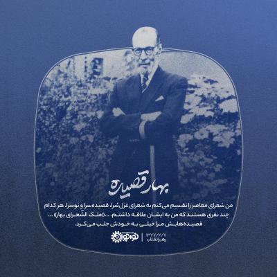 من شعرای معاصر را تقسیم میکنم به شعرای غزلسرا، قصیدهسرا و نوسرا. هر کدام چند نفری هستند که من به ایشان علاقه داشتم ... «ملکالشعرای بهار» ... قصیدههایش مرا خیلی به خودش جلب میکرد.