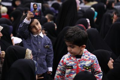 اقامه نماز بر پیکر شهید سپهبد قاسم سلیمانی و یاران مجاهد او